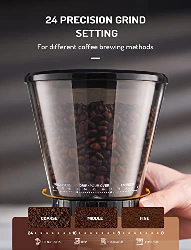 - High Quality Conical Burr: Stainless steel conical burr grinding more evenly, and the uniformity of coffee powder will make the coffee taste brighter and stronger after extraction, and the performance of the flavor characteristics will be clearer and more consistent.