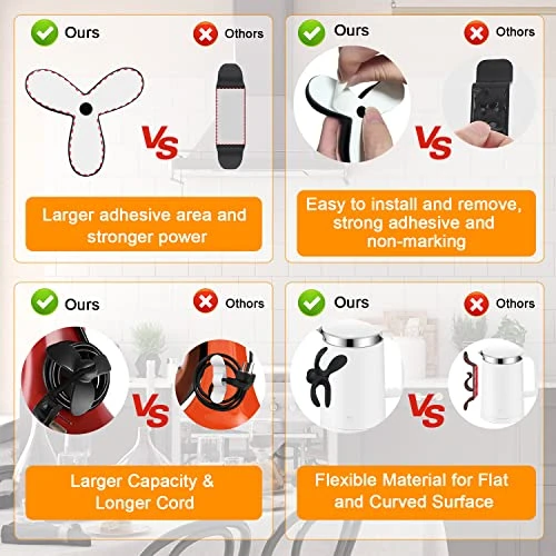 - Upgraded powerful stickiness: upgrade cord organizers are made of Powerful glue, with stronger stickiness. Sturdy, it is not easy to fall off and not leaving any traces on the surface. Upgrade the softness material of the cord organizer to ensure the thicker and longer appliance cables can be also organized easily.