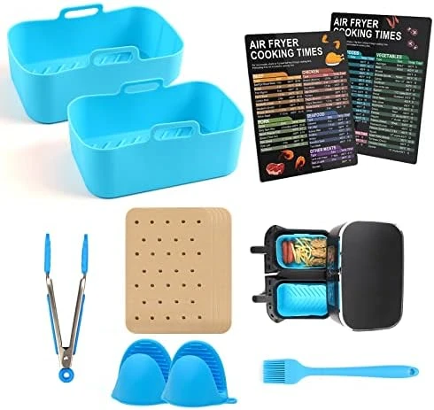 - ★ [ Size ] The size of Air Fryer Liners are 5.5″ x 8.3″, silicone pots are 7.67*5*2.75 inch, suitable for your Ninja Foodi 8-10qt. 2-Basket Air Fryer with Dual Zone, come with a stainless steel clip and more accessories, more convenient for your cooking.