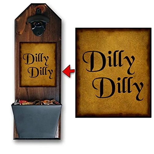 Dilly Dilly Bottle Opener And Cap Catcher. Handcrafted By A Vet. Made Of Solid Pine, Rustic Cast Iron Bottle Opener And Sturdy Mini Galvanized Bucket. Great Gift! (for Your Beer Or. Dad Or Mom!)