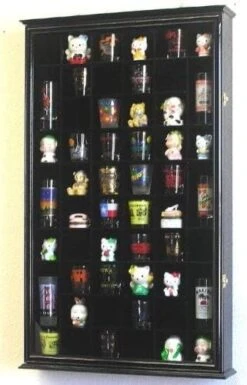 54 Shot Glass Shotglass Shooter Display Case Holder Cabinet Wall Rack W/UV Protection -Oak