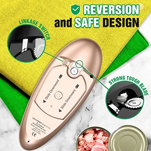 - 𝐒𝐀𝐅𝐄 𝐃𝐄𝐒𝐈𝐆𝐍 : The blade of this electric can opener for seniors is made of stainless steel, which is sharp and durable, and can be cut along the edge of the can lid without worrying about your fingers being cut by the blade. An electric can openers for kitchen for seniors with arthritis is a great helper in the kitchen.