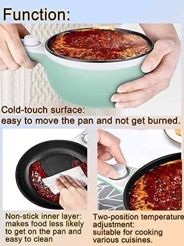 - Easy to clean: This electric hot pot is perfect for cooking and sautéing your favorite foods without a stove. Its food-grade non-stick coating makes it easy to use and clean, and it comes with a silicone turner spatula and egg rack as gifts.