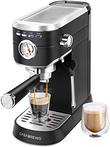 - ☕【Professional 20-Bar Pressure System】: Semi-Automatic 2-in-1 Espresso Maker, with 20-bar professional Italian pump and 1350W powerful boiler. This latte machine gives you top quality extraction, resulting in a more fragrant and rich aroma. The built-in pressure gauge on this cappuccino machine shows the exact pressure helping you make adjustments according to your personal taste preferences. You can create a cappuccino, latte or flat white at your home or office with our cappuccino maker.
