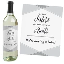 - UNIQUE PREGNANCY ANNOUNCEMENT GIFT IDEA: Family Promotion Wine Bottle Labels also make a great gift idea. Add Family Pregnancy Announcement Wine Bottle labels to a favorite bottle of wine or spirits for a special pregnancy gift. Use each wine label on a favorite beverage bottle and gift individually or create an impressive announcement gift basket using all 4 labels on coordinating wine or liquor bottles. Wine bottle labels will easily give your pregnancy announcement gift a personal touch!