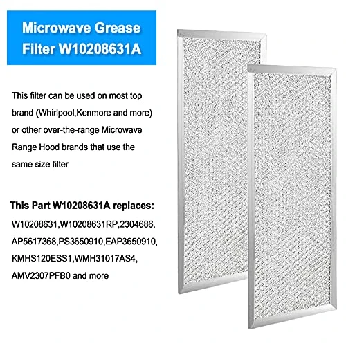 - ✅[REPLACEMENT PART NO.]: The Microwave Filter Replace W10208631, W10208631RP, AP5617368, 2304686, AH3650910, PS3650910 If you are not sure whether our the Grease Filter is compatible with your Microwave, please feel free to contact us to help you check.