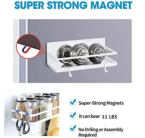- 【Strong Magnet Design】Magnetic Spice Shelf With Strong Magnet Design the max load capacity has been increased to 11Lbs without sliding down.