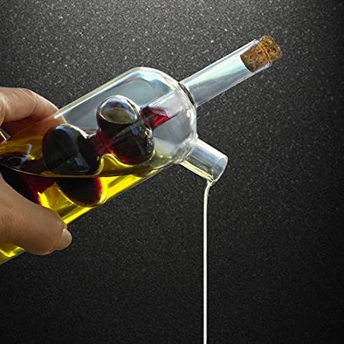 - PREVENTS UNNECESSARY SPILLS: The Glass Olive Oil and Vinegar Dispenser is designed with a non-dropping pouring system to help avoid unnecessary spills. Cork stoppers have also been included to help preserve flavor and freshness!