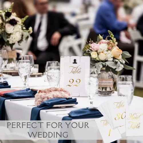 - The table number cards feature a chic double-sided gold foil lettering on a high-quality art paper