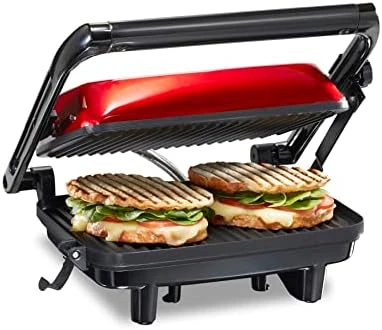 - STYLISH RED FINISH: Panini press looks great on any counter