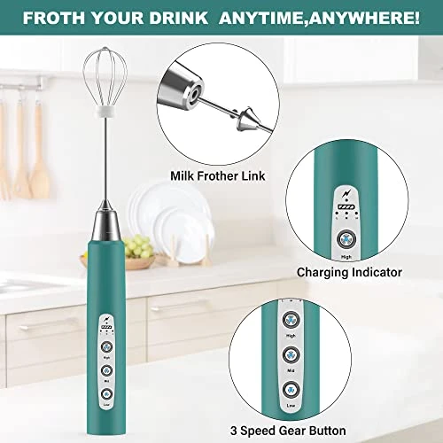- Fast Charging and Convenient to Carry – Unlike other battery-powered frothers, our new USB rechargeable milk frother comes with a built-in 1200mAh battery with power display function. It also comes with a USB charging cable and charging port, which eliminates the need for frequent battery replacement, making it both eco-friendly and cost-effective. A single charge can last for a long time.