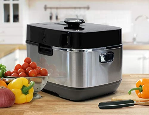 - DIGITAL CONTROLS – Features temperature controls, custom timer and twenty preset cooking times for meat, poultry, seafood, soup, stew, noodles and more.