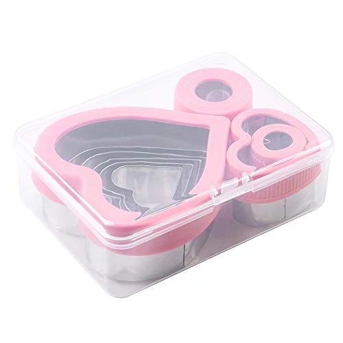 - Package Includes:9 piece heart shapes cookie cutters and a free PVC plastic storage box.different size biscuit cutters Meet your different needs(Size Approx:0.98″/1.45″/1.57″/1.96″/2.04″/2.32″/2.75″/3.18″/3.74″)