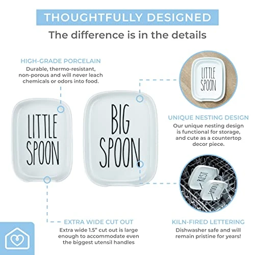 - Gift Boxed: Made from thick quality porcelain with super cute wording and beautifully gift boxed, this spoon and ladle rest set is an easy choice for Housewarming Gifts, Christmas Presents, Birthday Gifts or Wedding Gifts. Give your spoons a nicer home, with this Stove Top Spoon Rest from Heartland Home.