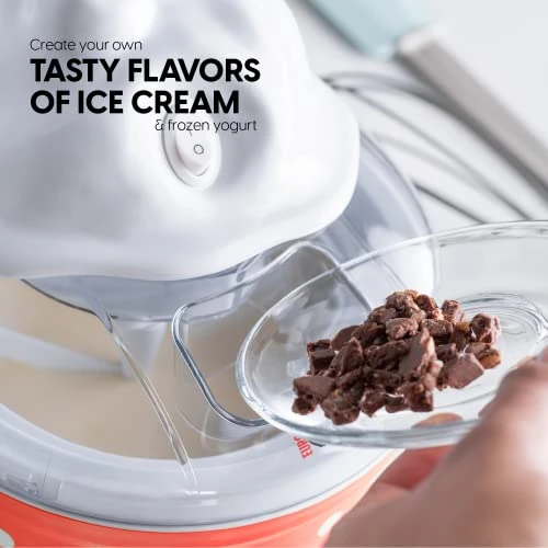 - Fun & Cute Appliance – Available in red and green with white polka dots, this electric ice cream maker’s charming design will delight kids and adults alike–the top is even shaped like soft serve!