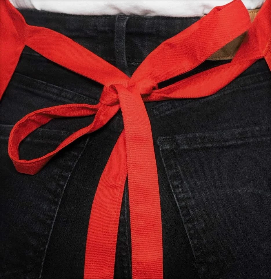 - Two pockets, Adjustable bib neck strap and generous waist tie