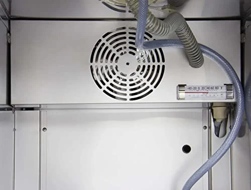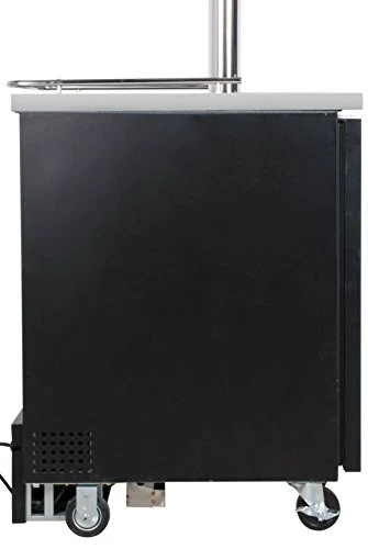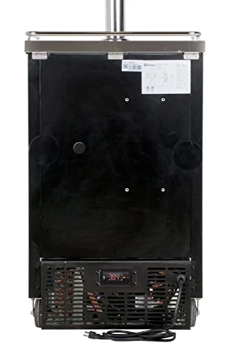 - Heavy-duty insulation, a 1/7 hp compressor, fan-forced cooling, and a blower hose that directs cool air into the draft tower ensure that your beer will be frosty cold from the first drop to the last. The interior fan provides rapid cool down and consistent temperatures. Manual temperature control allows you to easily set the temperature between 33 degrees Fahrenheit and 41 degrees Fahrenheit using a convenient manual dial located inside of the cabinet.
