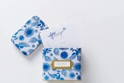 Otomi Recipe Box With 24 Cards & 12 Dividers – Folk Art Blue Decorative Recipe Organizer Tin Box