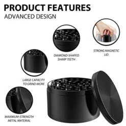 Grinder Set – 4″ Grinder With Aluminum Magnetic Lid UV Seal Glass Jar (Black Set)