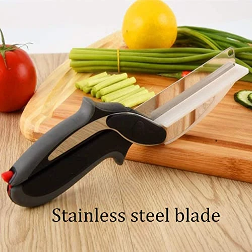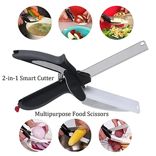 - Multi-function: 2-in-1 multi-function smart cutter food scissors, replace all kitchen knives with one easy-to-use kitchen appliance set. It is a combination of sharp stainless steel blade and cutting board to make cutting, slicing and dicing easy and quick.