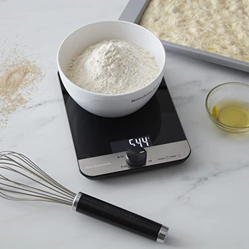 - UNIQUE FEATURE: Rotating knob design inspired by KitchenAid countertop electric ovens. Twist to set the units of measurement and push to Tare or power on/off