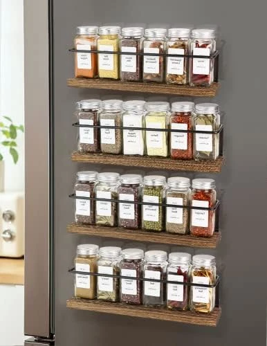 - 【SUPER MAGNETIC SHELF】The magnetic shelves are incredibly strong, capable of holding up to 6.6 pounds of weight without slipping. The guard rail also helps to protect your jars from falling.