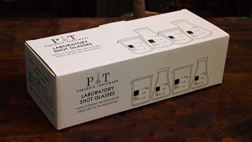 - Contains 4 Shot Glasses (2 Erlenmeyer Flasks and 2 Beakers)