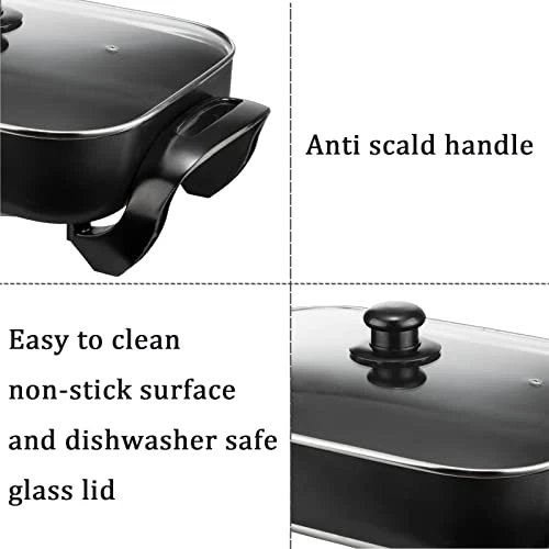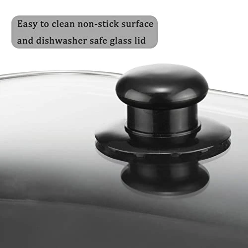 - Easy to clean non-stick surface and dishwasher safe glass lid