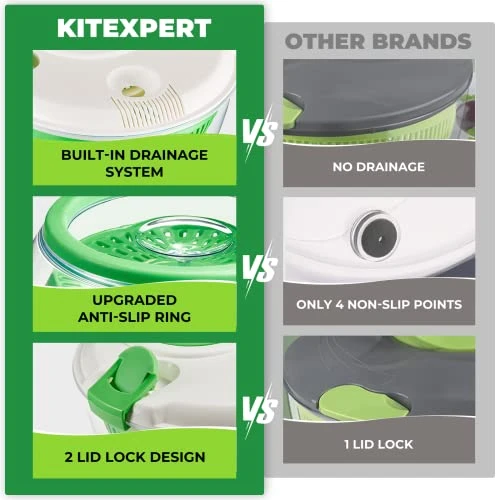 - Versatile: Ideal for washing and drying potatoes, pasta, berries, vegetables and produce. This salad dryer spinner can be used not only to wash, but also to drain excess water from vegetables, fruits, and pasta. The chores can turn into pleasure, making your salads tastier.