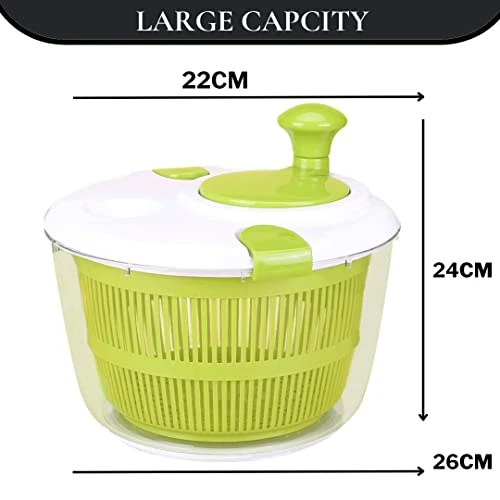 - MULTI-FUNCTION: Hassle-free unique design with large handle provides easy spinning. The Strainer basket allows for washing vegetables, it is also made to dry your salad with little effort and maximum efficiency. Make great tasting salads, any recipe your heart desires. This salad spinner is mainly used to dry washed sprouts, Freshly Washed Lettuce, Spinach, we can also use as a storage basket