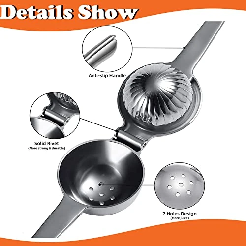 - ERGONOMIC DESIGN – The long handles of the OVOS Lemon Juicer with its rounded edges makes it very comfortable to use. The longer length of the handle allows you to take its leverage and makes squeezing really easy. You can also comfortably put pressure on the handle without the edges of the handle cutting into your hands. Moreover, the holes are thoughtfully sized to allow for easy juice flow without splatter