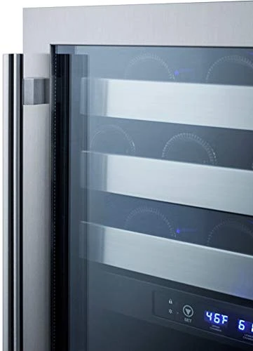 - Seamless stainless steel trimmed glass door provides an elegant view of your collection