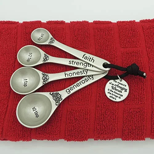 - CELEBRATE HER: Show her how much you care and uplift her spirit with this measuring spoon set with measurements of 1/4-tsp, 1/2-tsp, 1-tsp, and 1/2-tbsp, packaged in a gift box with a card showing the “recipe for an amazing woman”