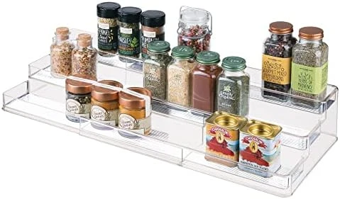- MAXIMIZE YOUR SPACE: Create more space in cluttered kitchen cabinets, shelves and pantries with this very functional tiered expandable shelf organizer; Arrange spices, baking supplies, vitamins, sauces, soups, jelly jars, essential oils, medicine bottles and more; Items are within easy reach, but out of view, keeping your kitchen looking organized and clean; No hardware needed, it is easy to use – just place and expand to the size that works best for a custom fit