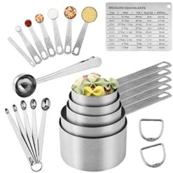- ▲▲HIGH QUALITY DURABLE AND STURDY – These measuring cups and spoons set are Stainless Steel with a stain finish