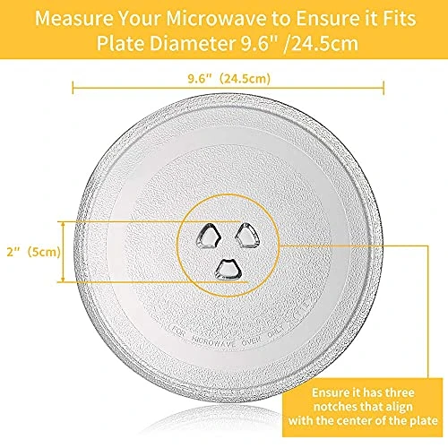 - EASY INSTALL: 1) Check your bushing coupler (centerpiece that turns the plate) & ensure it has three notches – these should align with the middle of plate. 2) Measure the interior to ensure a 9.6″ diameter microwave plate is ideal (Only for small microwaves) Compatible With A Variety Of Makes And Models Of Small.