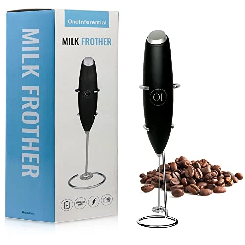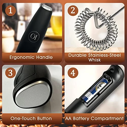 - Use the stand to easily display the frother as a beautiful addition to your coffee station or remove the stand and easily store it in a drawer. It uses 2 AA batteries (not included) to blend your drinks to perfection