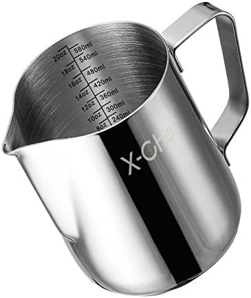 - ⌛PROFESSIONAL QUALITY: X-Chef Milk Frothing Pitcher is made of well finished food grade stainless steel, rust-proof, stain-proof and crash-proof, heat-proof, unbreakable by daily use.