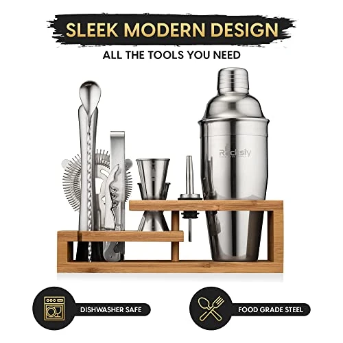 - ✔ Tough-As-Stainless-Steel Tools – Real mixologists don’t use flimsy tools! Shake, mix, and pour with impressively durable cocktail tools. These bartender tools are built from SS304 silver stainless steel alloy. They’re dishwasher-safe, heavily rust-resistant, and designed to last your entire amateur bar career.