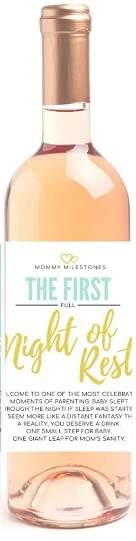 - CELEBRATE MOMMY MILESTONES – This baby shower present wine bottle label, perfectly commemorates your first full night of rest after baby.