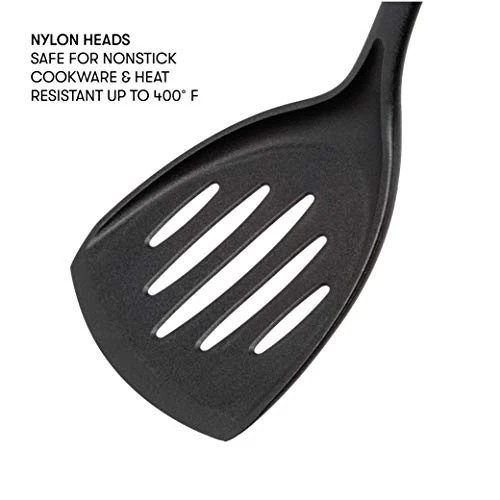 - Safe for non-stick surfaces: The nylon construction of this kitchen utensil set is safe for use on non-stick surfaces like non-stick pots and pans, and is heat resistant up to 400 degrees Fahrenheit. These tools won’t melt and won’t scratch your expensive non-stick cookware.