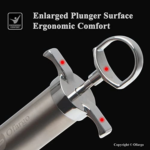 - EASY to USE & DISHWASHER SAFE: Ergonomic threaded design, easy to assemble or dismantle. 2-oz large capacity injection barrel minimizes refills; plunger handle offers a comfortable grip and friendly pressure control; 4 interchangeable turkey needles w/ multi-holes for deep penetration and perfect sauce distribution, like chunky marinades or liquid brine.