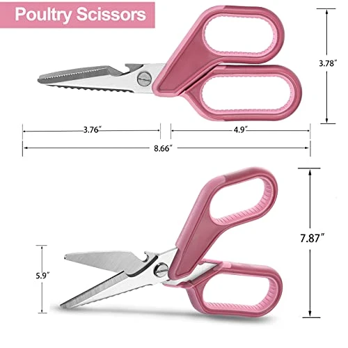 - 💎💎Our all-in-one poultry shears have multiple functions. In addition to cutting poultry, they can be used for cutting other meats, such as beef and pork, and even vegetables, such as potatoes and carrots. You can also use them to cut herbs without the need of a knife.