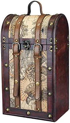 - ANTIQUE MAP DESIGN WITH LUXE DETAILS – This wood wine box is decorated with faux leather luggage straps, brass buckle closures and shiny brass studs, and an antique map design for vintage flair. This wine box is the perfect way to gift fine bottles.