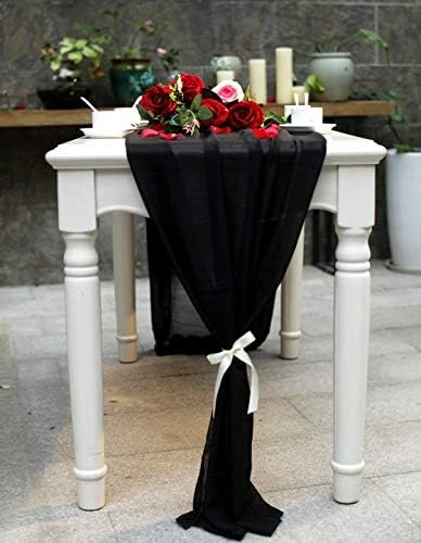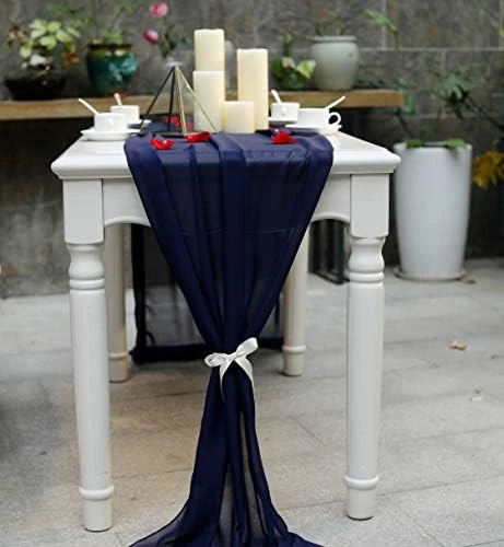 - This romantic chiffon table runner is with nice stitching edge make it can be used more times. We have 2 ivory ribbons for you to tie as bowknot. It will come to be a dreamy display.