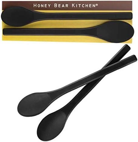 - Heat resistant up to 450 F. Silicone outside with metal core. These spoons are great for handling hot milk foam froth to oatmeal to bulletproof coffee to cold deserts like yogurt and ice cream milkshakes. These spoons can handle it.