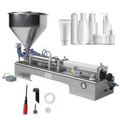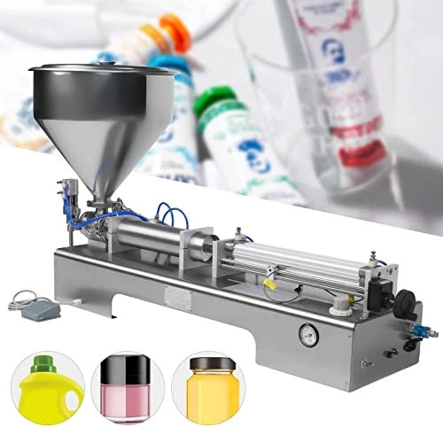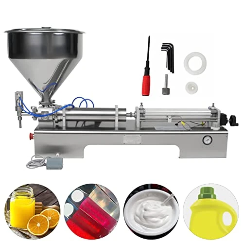- 【Pneumatic liquid filling machine】This is a semi-automatic 100-600ml horizontal single-head paste filling machine. Pneumatic filling machine is suitable for various high viscosity liquids and pastes, such as honey (uncured state), cream, ketchup mustard sauce, fine-grained chili sauce.