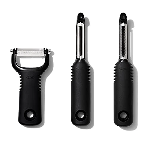 - Serrated Peeler has a sharp, serrated stainless steel blade to easily peel waxy and slippery fruits and vegetables like peaches, plums, tomatoes, zucchini and more