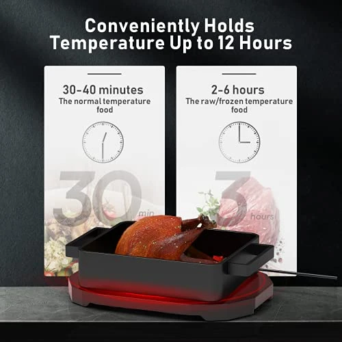 - 【Specification of BYQIYE Food Warmer Oven】: This portable food warmer need use the FLAT and HEAT-RESISTANT containers size up to 10.4″L x 7.6″W x 5.1″H or less. The length of power cable is 3.7ft within power cable stroage(pure copper with sturdy PVC jacket for better electric conductivity), applys 0.06in(1.2mm) thicker aluminum foil lining for better heat retention, the pocket is made of high quality material, durable and tear resistant.