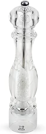 - ARTISTIC ACRYLIC — The body of the Nancy mill is produced entirely in crystal acrylic showing off its contents without the worry of an empty reservoir surprise. At the table and in the kitchen, these transparent salt mills pay tribute to the pleasure of the senses, spices and flavors